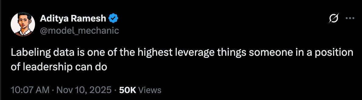 We need to focus our efforts on what’s fundamentally new: golden outputs replace workflow documentation, datasets and evals become core product artifacts, trace analysis augments traditional user research, and task success rate supersedes funnel metrics. Create a self-improving system where data curation is as critical as shipping features.