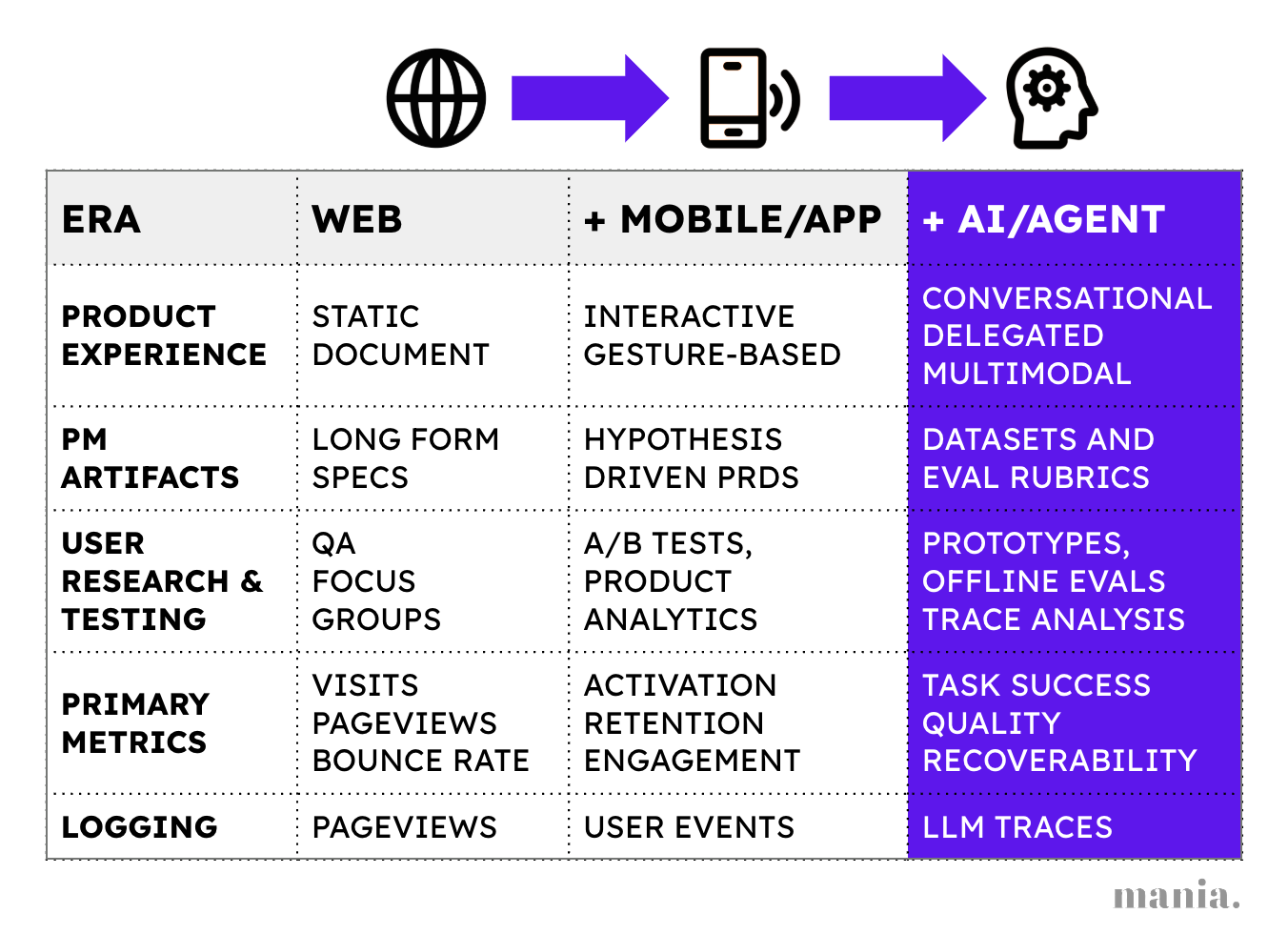 The primary driver of this change is how AI has rewired the role of software. The product is no longer a set of workflows but a system that delivers work. And since AI tools deliver work instead of workflows, PMs need to analyze and describe a different kind of job - the work output itself. They need to specify the requirements for the underlying system and a quality standard for the resulting work.